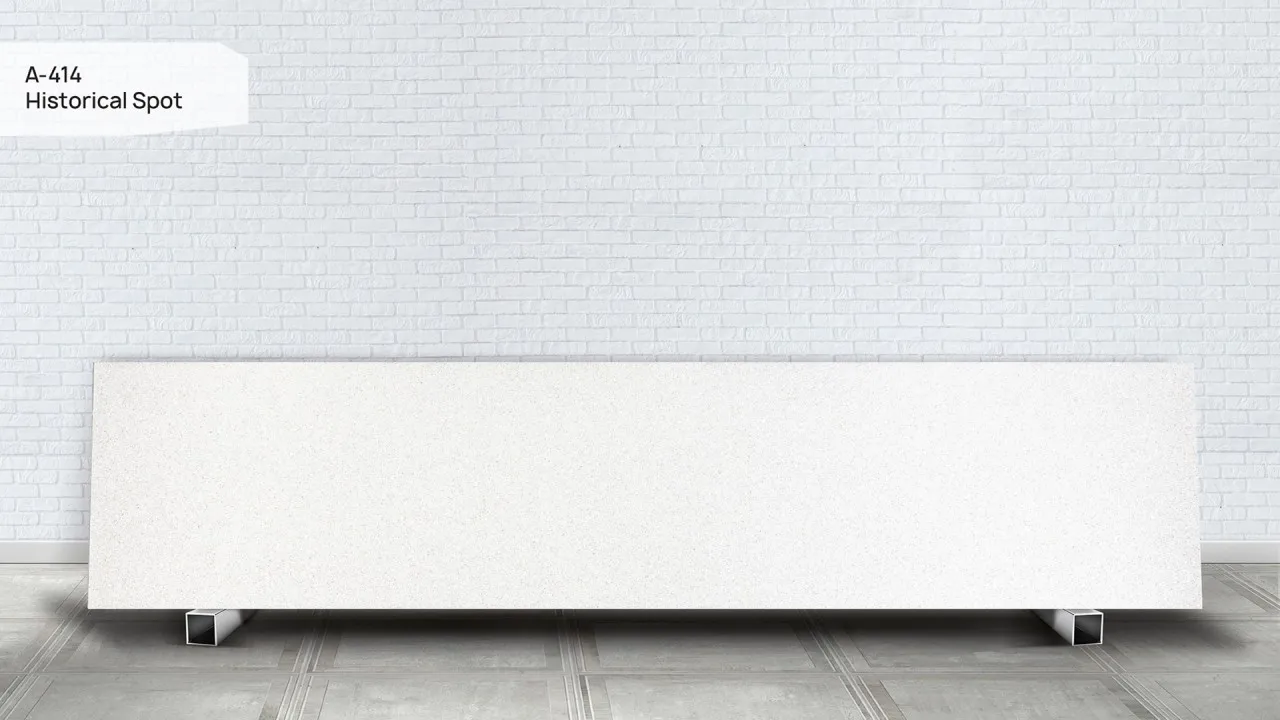 Blat Historical Spot powstał z inspiracji dawnymi strukturami kamienia. Jego mlecznobiała powierzchnia została gęsto pokryta inkluzjami, cząstkami i okruchami mineralnymi w różnych odcieniach, co tworzy efekt wiekowego, naturalnego materiału.