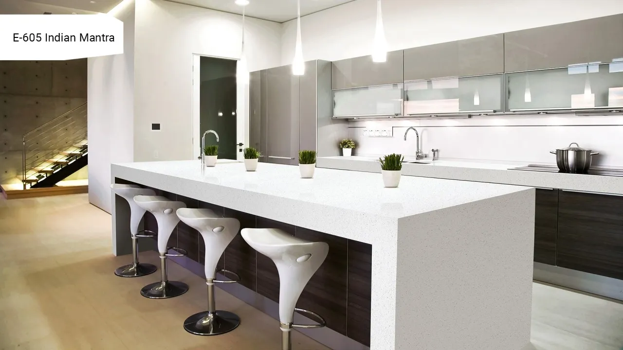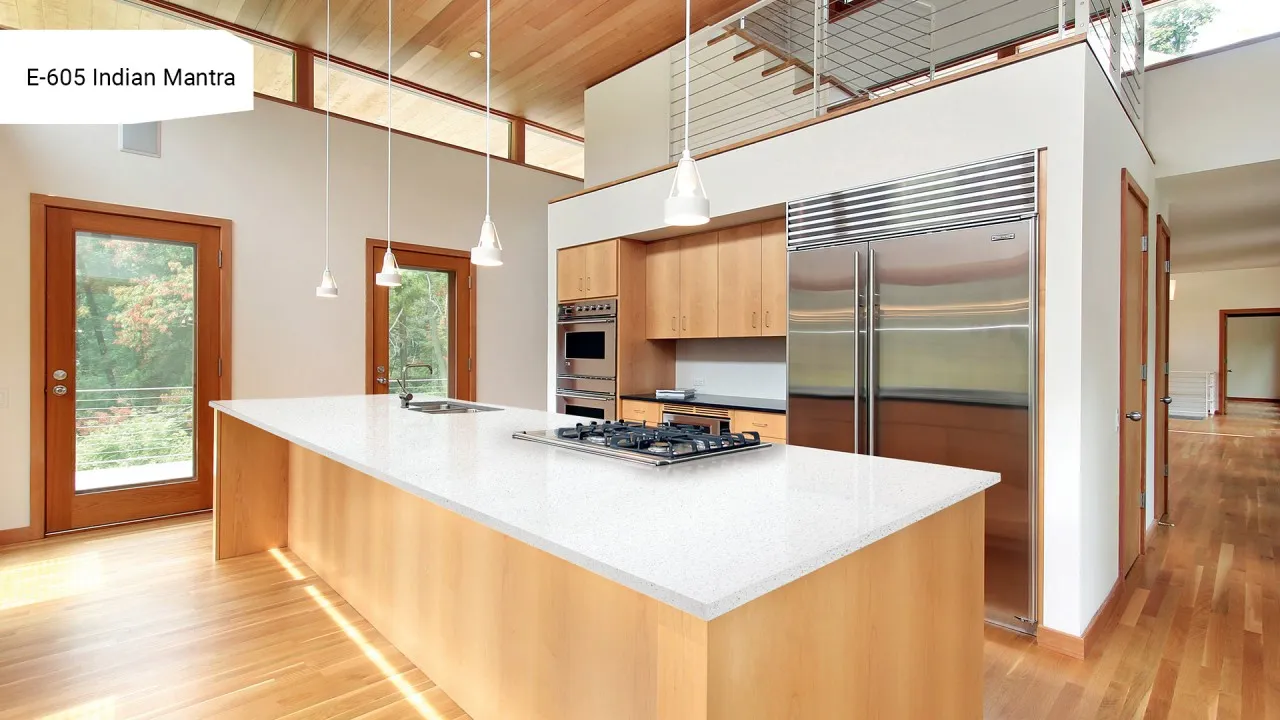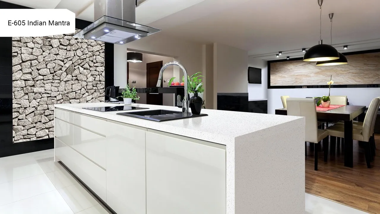 Dzięki swojej neutralnej kolorystyce blat kamienno-akrylowy Indian Mantra świetnie komponuje się zarówno z jasnymi, jak i ciemnymi aranżacjami, sprawiając, że wnętrze nabiera eleganckiego i harmonijnego wyglądu.