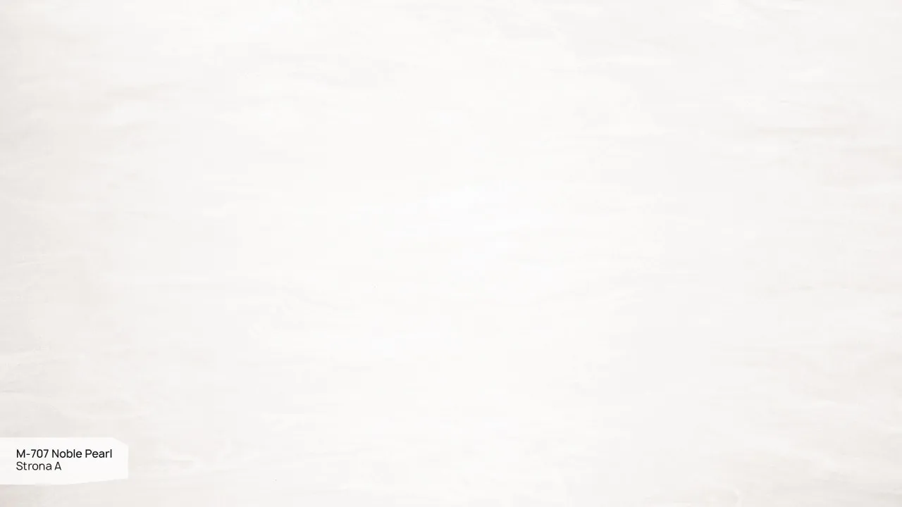 Blat Noble Pearl urzeka szlachetnym charakterem i wyjątkową perłową barwą. Jego powierzchnię zdobią delikatne, miękkie żyłki, które nadają całości subtelnej głębi. Dodatkowym atutem są błyszczące cząsteczki mineralne, które pięknie odbijają światło, tworząc efekt wyrafinowanego połysku.