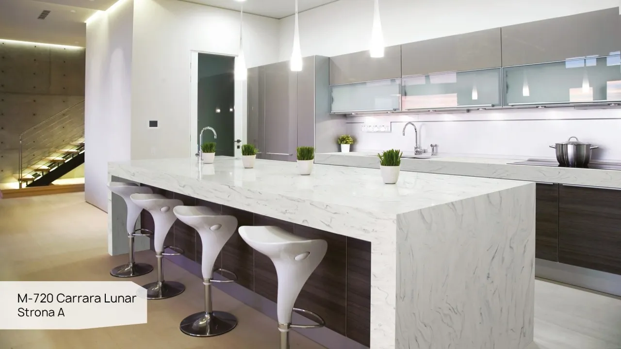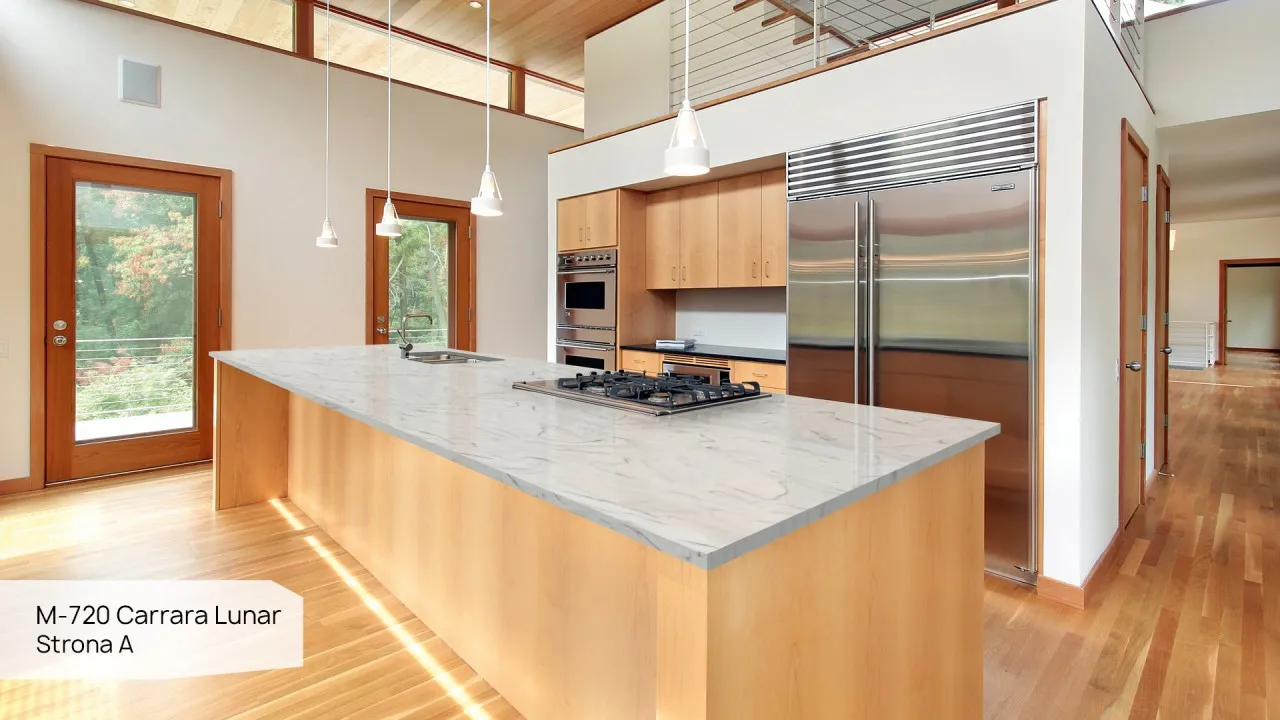 Blat Carrara Lunar inspirowany jest pięknem klasycznej carrary, ale w nowoczesnym wydaniu. Jego jasnoszara powierzchnia została urozmaicona delikatnymi żyłkami i cętkami w odcieniach szarości, które dodają całości głębi i elegancji.