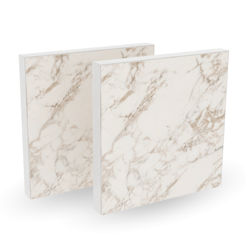 Blat kompaktowy Gold Calacatta to wyjątkowa interpretacja klasycznego marmuru w ciepłych, naturalnych barwach. Przepiękna kolorystyka łączy odcienie beżu, brązu oraz delikatne wtrącenia bieli i szarości, tworząc efekt elegancji i luksusu. Powierzchnia Extramat, przyjemna w dotyku, wiernie oddaje wrażenie naturalnie szlifowanego marmuru, podkreślając autentyczność dekoru. Gold Calacatta to doskonały wybór dla osób, które pragną wprowadzić do swojego wnętrza wyrafinowany, ale jednocześnie ciepły klimat, pełen subtelnej głębi i ponadczasowej klasy.