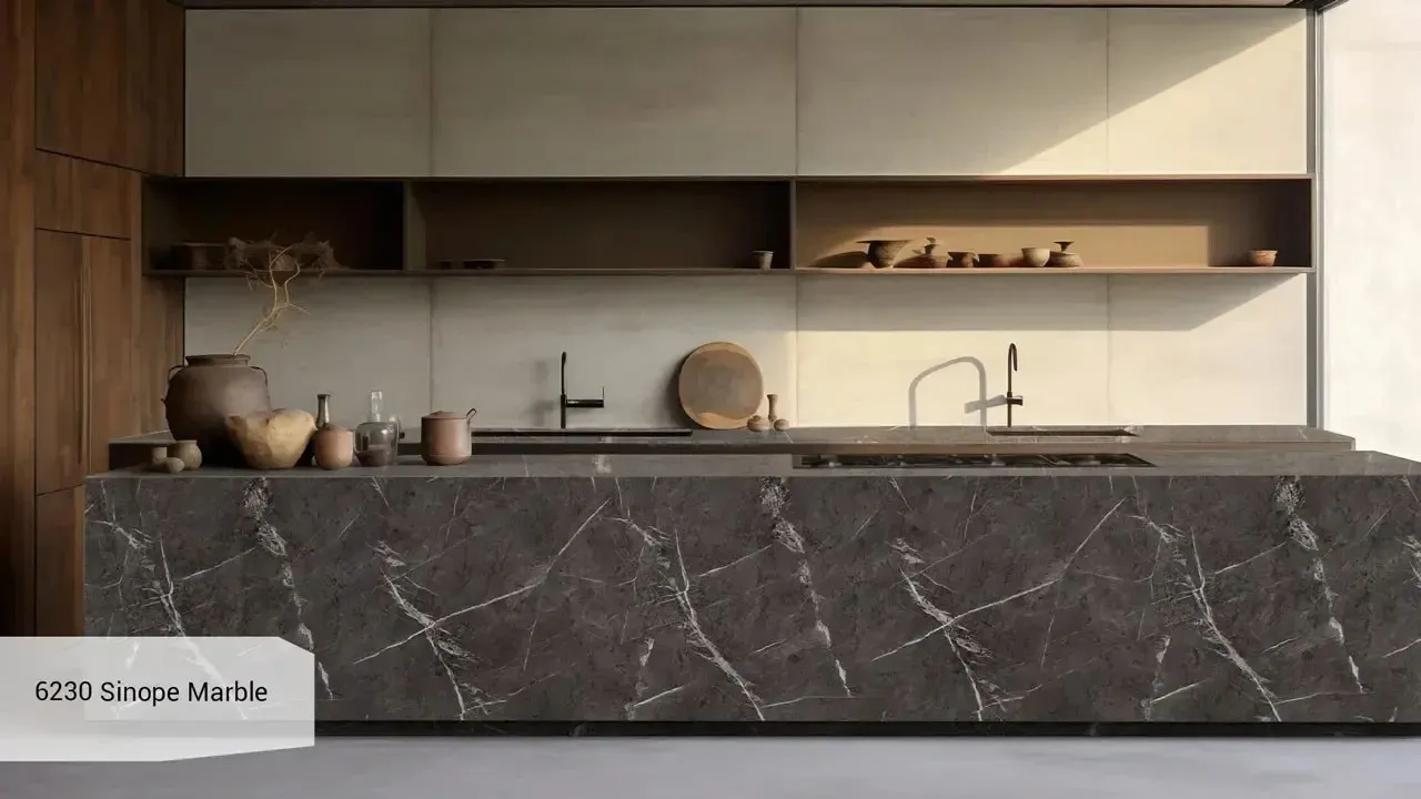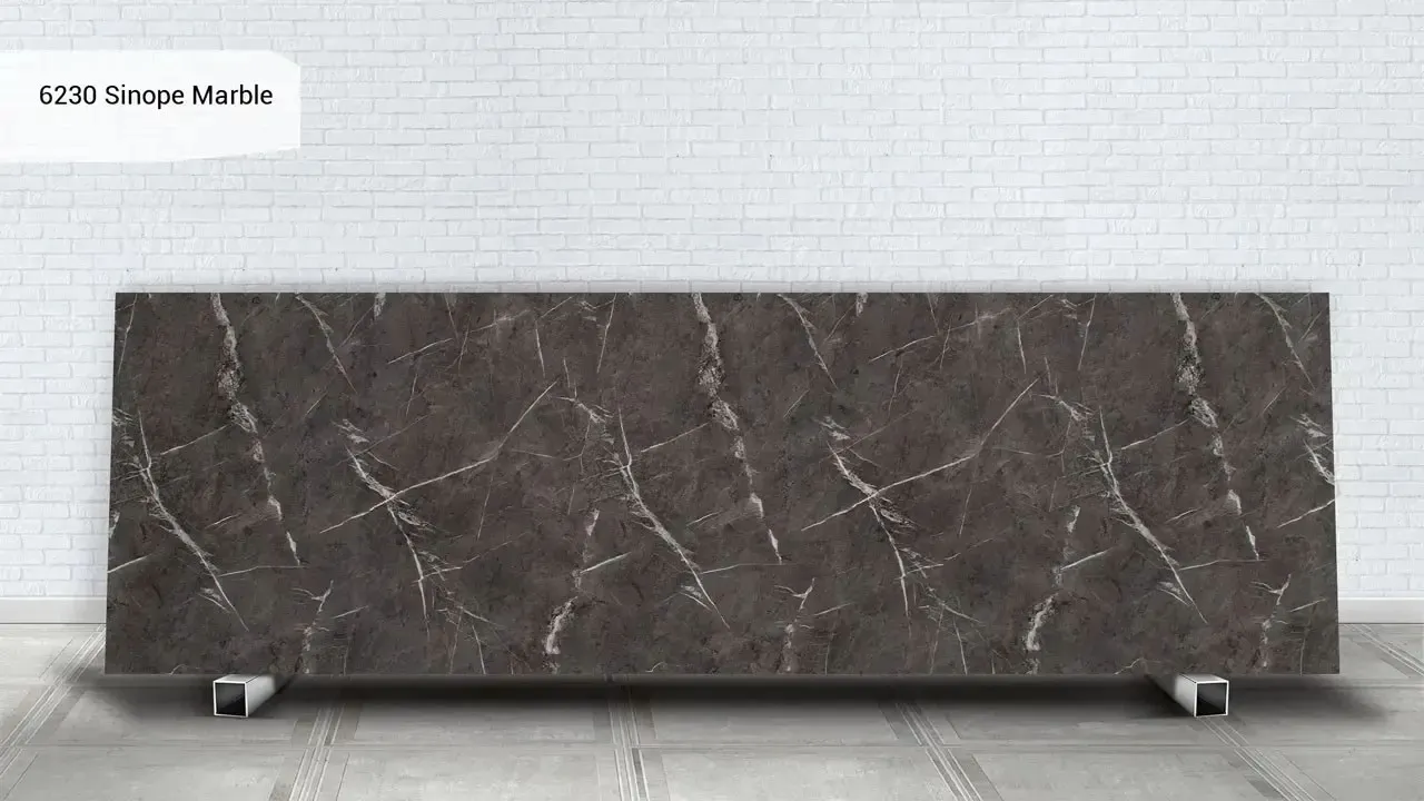 Sinope Marble 6230 to blat HPL o intensywnie szarej bazie, poprzecinanej nieregularnymi białymi żyłkami, które tworzą wrażenie głębi i ruchu. Inspiracją dla tego dekoru była klasyczna estetyka marmuru w nowoczesnej odsłonie. To doskonałe rozwiązanie do wnętrz loftowych, industrialnych oraz przestrzeni, w których liczy się niebanalny, ale stonowany charakter.